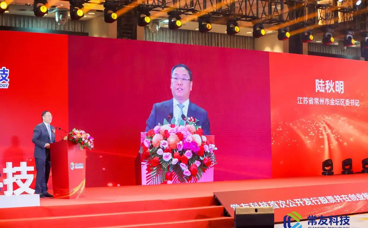 在此,我也感谢江苏常友环保科技股份有限公司刘文叶董事长兼总经理的盛情邀请,再一次祝贺常友科技2025年3月4日(明天)在深圳证券交易所创业板成功上市,开市大吉,股市长虹!